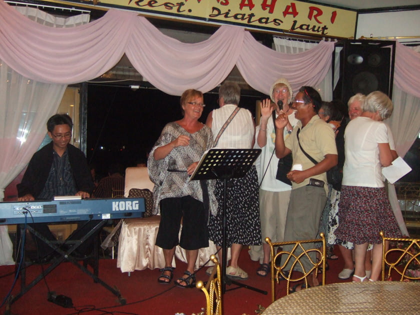 På java besøgte vi Landsbyen hvor Eddie er vokset Vi havde den dejlige oplevelse at hilse på hans familie. På Borneo boede vi på husbåd og sejlede på floden Kumai hvor vi besøgte Orangutang center og så næseaberne muntre sig i trækronerne langs flodbredden .