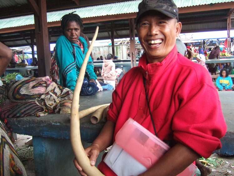 Et af højdepunkterne på disse ture var da jeg for få år siden var på West Papua hvor vi var hos Dani folket der lever oppe i Bjergene i Balim dalen. Vi var bla.en hel dag i en “indfødt” landsby og oplevede denne etniske gruppes helt specielle levevis. Mændene går med penis futteraler og kvinderne med græsskørter og bar overkrop. Denne gruppe blev først opdaget i 1938. Vi var rundt i området ved Yayapura som er hovedstaden i denne region. Byen ligger så smukt ved Hombolt bugten . Området er flot og interessant,med mange ninnedsmærker fra 2den verdenskrig.