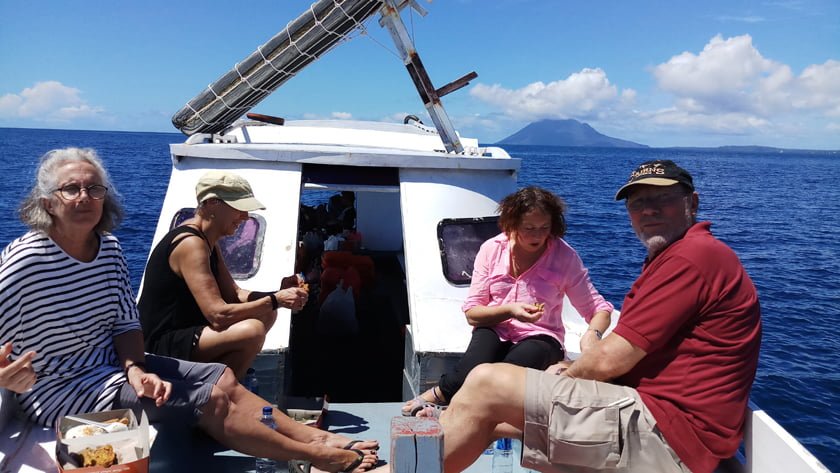 We went on a trip with Eddie 05. 02. 19. for 5 days. We saw different living styles in the north of Sulawesi. We saw the fishermen coming into the harbour early in the morning with their catch. We saw how to make whisky without being drunk. We went Into the new Minahasa houses, witch you can buy and take the house with you where ever you go.
